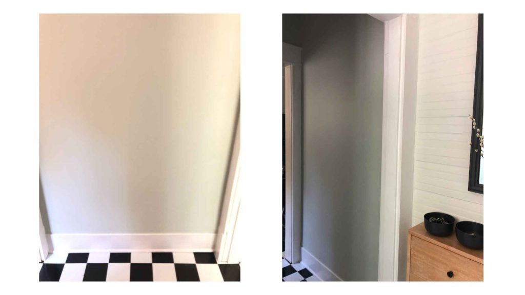 At least in the back of the house, none of the brad (tiny wire nails shot from a nail gun) holes on the painted quarter round (that trim between the baseboard and the floor) were ever caulked. It’s funny how you can live in a place for nearly thirteen years and not really pay attention to it! But when I’m doing a paint job, those unfinished details are glaringly obvious to me.