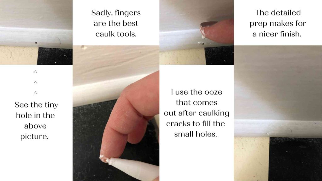 So I caulked the holes in the quarter round as well as cracks and gaps in the doorway trim.